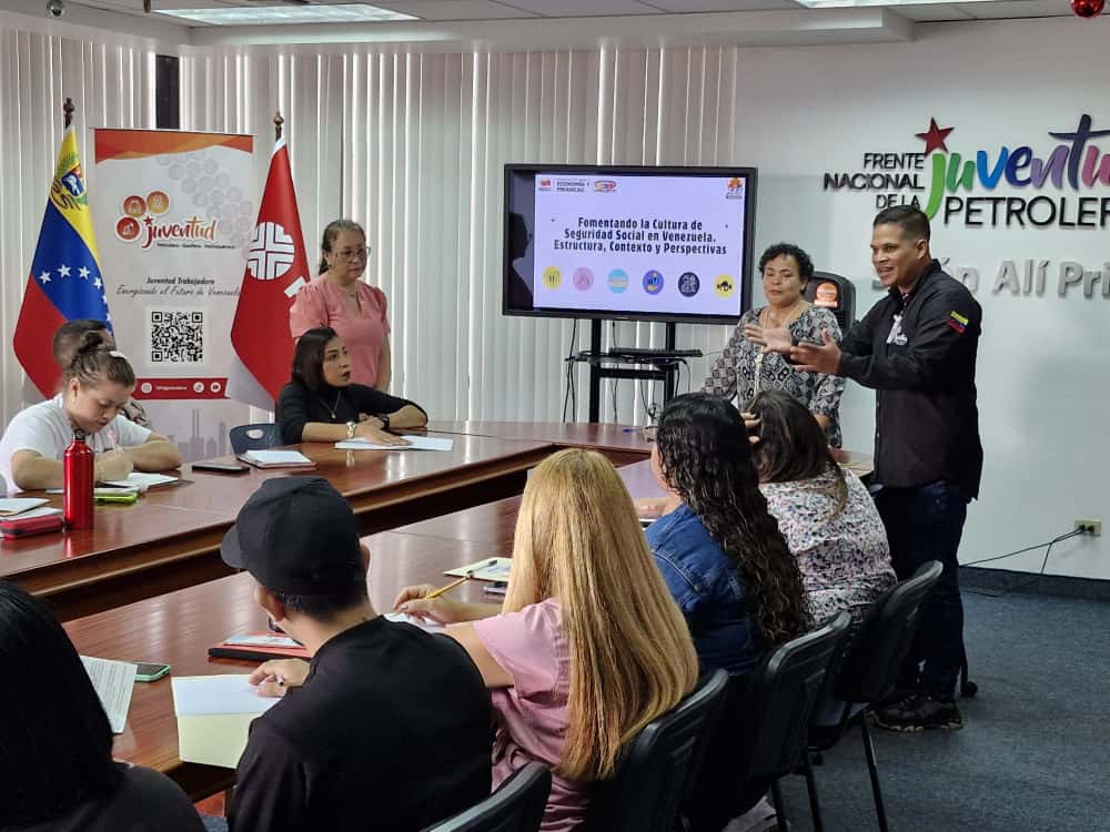 Caracas 05 de noviembre de. 2025.– La fuerza trabajadora de Desarrollos Urbanos S.A. ( DUCOLSA), orientados por su presidenta Alejandra Velázquez, participaron en el taller titulado "Fomentando la Cultura de Seguridad Social en Venezuela: Estructura, Contexto y Perspectiva", una jornada formativa que se realizó en el Salón Alí Primera de la de la sede nacional de la Juventud Petrolera.